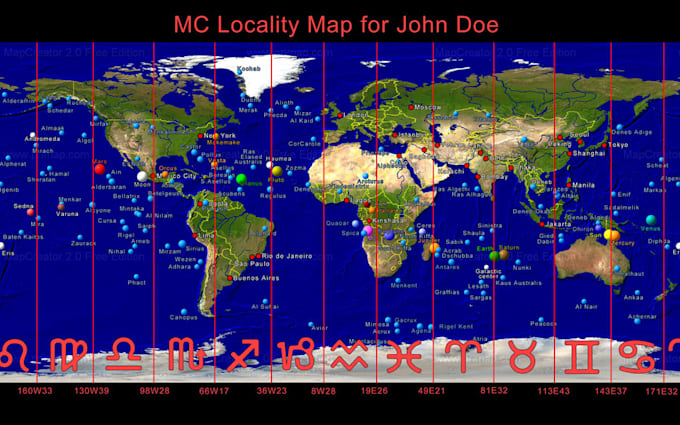 Gig Extra #3 - I will provide a world map of all of the planets in your astrology chart relative to the different locations around the world (conjunctions and oppositions only). This world map will also come with a brief explanation of all your planet locations in the world map so you can see how they might affect you in a particular area.