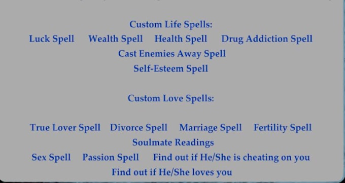 I will custom spells like love,health,wealth etc